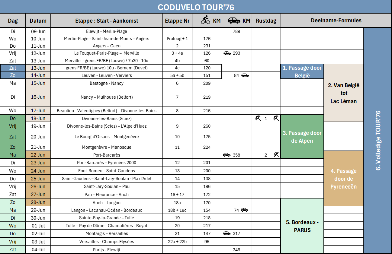 - ✔ Fietsdagen: 19 tem 21 juni 2026